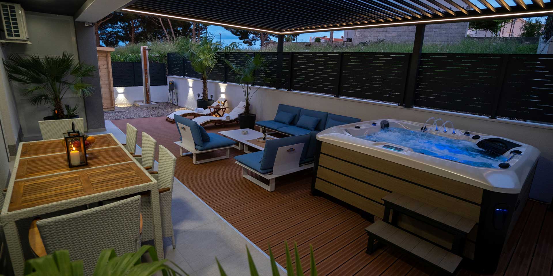 The terraces and jacuzzis are part of the apartment and only you have access to them.